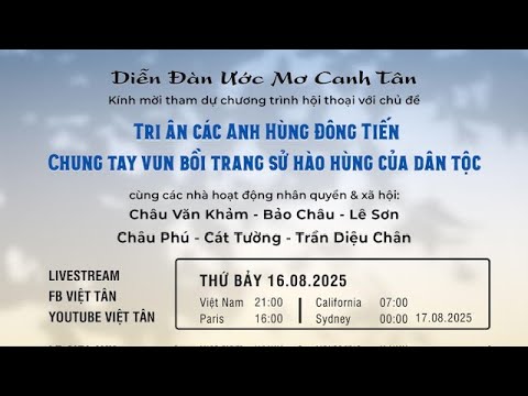 Xem tiếpDiễn Đàn Ước Mơ Canh Tân:Tri Ân Các Anh Hùng Đông Tiến Chung Tay Vun Bồi Trang Sử Hào Hùng Dân Tộc